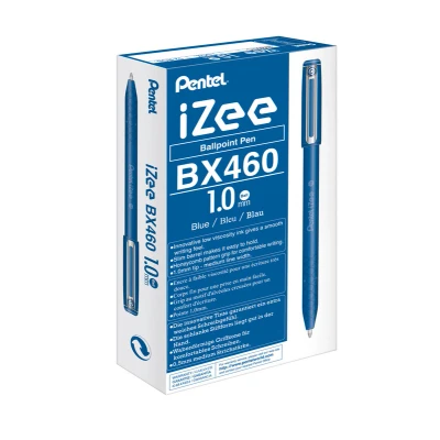 Pentel iZee Ballpoint 1.0mm Blue Pack of 12 offers smooth, skip-free writing with low-viscosity ink and a durable 1.0mm tip. Featuring a comfortable honeycomb grip and sturdy metal clip, these pens are ideal for everyday use at home, school, or the office.