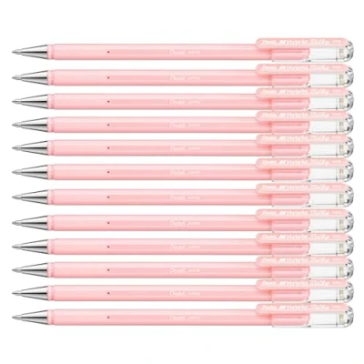 Pentel K108 Hybrid Milky Gel Rollerball Pen, Pastel Pink (Pack of 12)