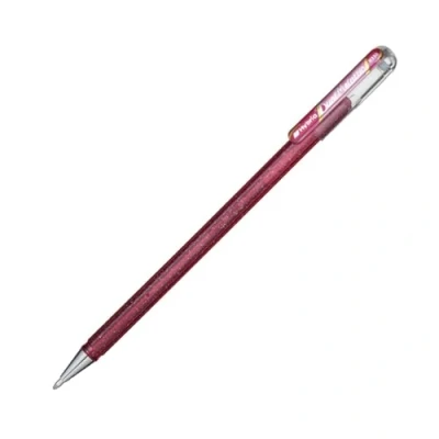 Pentel K110 Dual Hybrid Metallic Gel Rollerball Pen Pack of Glitter 1 2 Different Colour Effects on Light Wood/Dark Paper 0,5mm Pink/met. Pink