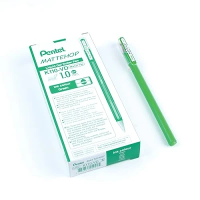 Pentel Mattehop 1.0mm Gel Roller Green Pack of 12