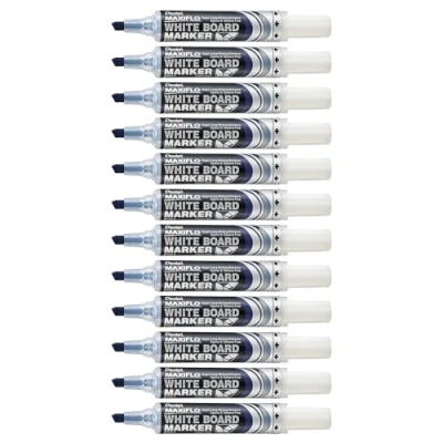 Pentel Maxiflo Dry Wipe Slim Chisel Tip Marker Blue (Pack of 12)