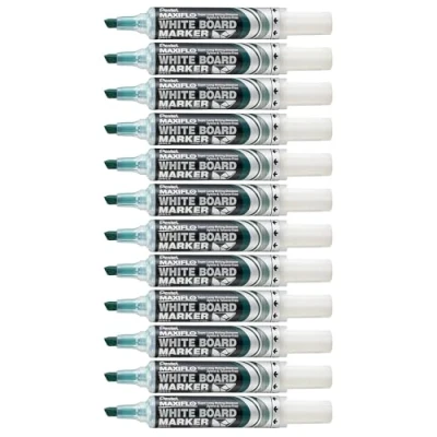 Pentel Maxiflo Dry Wipe Slim Chisel Tip Marker Green (Pack of 12)