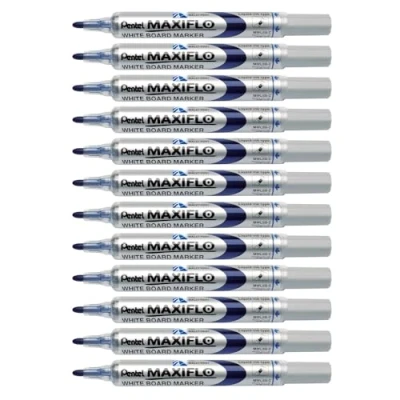 Pentel Maxiflo Broad Point Liquid Ink Dry Wipe Marker MWL5W Pack of 12, Blue