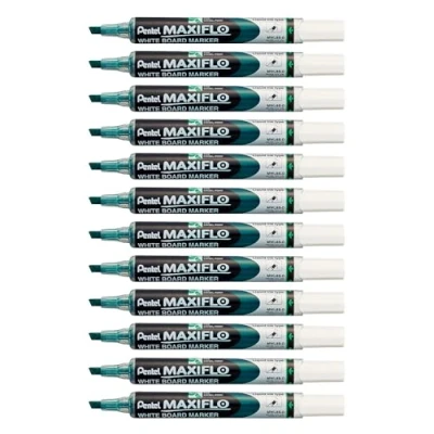 Pentel Maxiflo Dry Wipe Whiteboard Marker Medium Chisel Tip Liquid Ink (Pack of 12) Verte