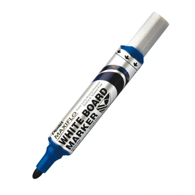 Pentel Maxiflo Dry wipe/White board marker with liquid ink Unique pump action system to replenish ink supply Medium Bullet Point Tip Removes from board easily with a dry cloth or board eraser Bullet tip writes approx a 2.5mm line