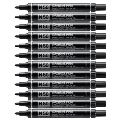 Pentel N50 Permanent Marker Bullet Tip 1.5 2mm Line Black Ref A [Pack of 12]