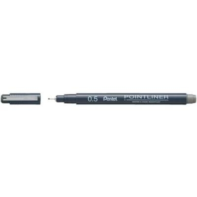 Pentel Pointliner 0.5mm tip in grey ink Perfect for writing, drawing or sketching Certified water and fade resistant pigment ink Can be used with watercolours or dye ink products