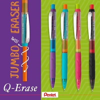 Pentel Q Erase QE425 Mechanical Pencil with Retractable Eraser 0.5mm HB Hardness (Pack of 12)