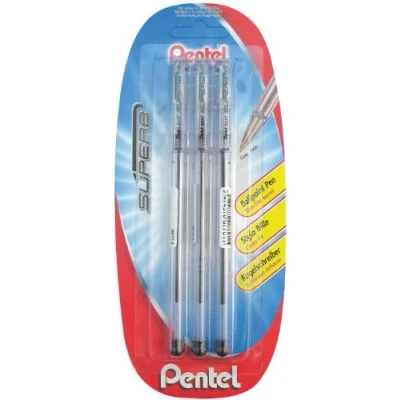 Pentel Superb Ballpoint Pen black Ink, 1 Blister of 3 pens