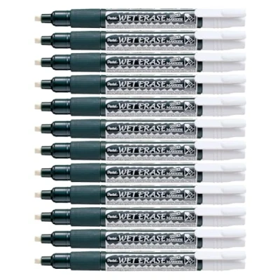 Pentel Wet Erase Chalk Marker Chisel Tip 1.5 4 mm Line White (Pack of 12)