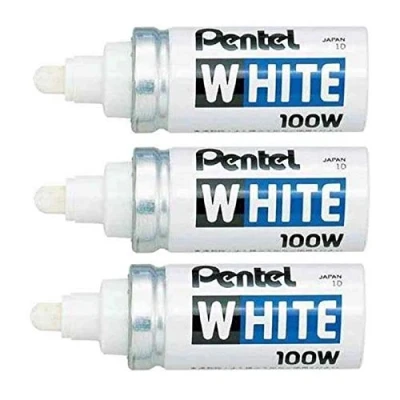 Pentel White Permanent Markers X100W Bullet Tip 2.9 mm, Pack of 3