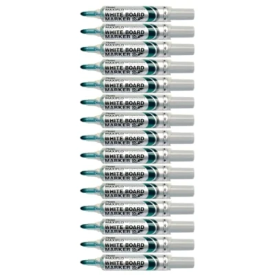 Bullet point medium tip liquid ink drywipe marker Push button pump action replenishes ink to the tip For white and porcelain boards Green ink, box 12 Ideal to refill your Pentel MWL5M/4E Maxiflo eraser set