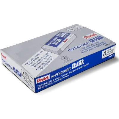 The Pentel Hi-Polymer Eraser Small Pack of 48 features high-quality erasers with an advanced micro capsule formula for smooth, clean erasing with minimal residue. Ideal for writing, sketching, and technical work, each eraser includes a protective sleeve for durability and precision in any workspace.