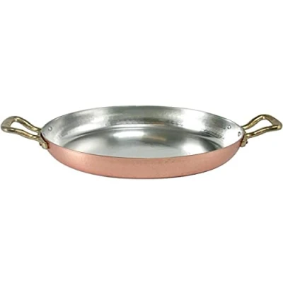 Pentole Agnelli ALCM110M28 Tin Plated Copper Pan with 2 Brass Handles, 28 cm