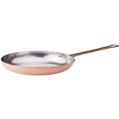 Pentole Agnelli ALCM111M36 Hand Tinned Hammered Copper Frying Pan With Brass Handle, Diameter 36 cm