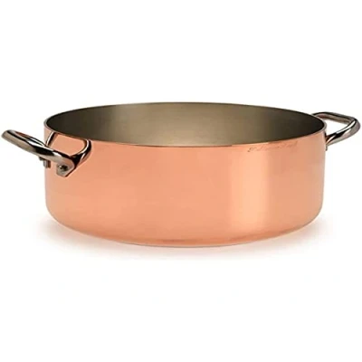 Pentole Agnelli ALCU104PI28 High Copper Saucepan with 2 Stainless Steel Handles, Tinned for Induction, 28 cm