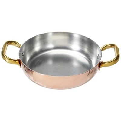 Pentole Agnelli ALCU11020 Hand Tinned Smooth Copper pan with 2 Brass Handles, 20 cm