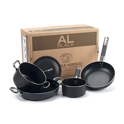 Pentole Agnelli ALSASETALBLACK2 All Black Cookware Set for 2 Persons, 3 mm, 5 Pieces