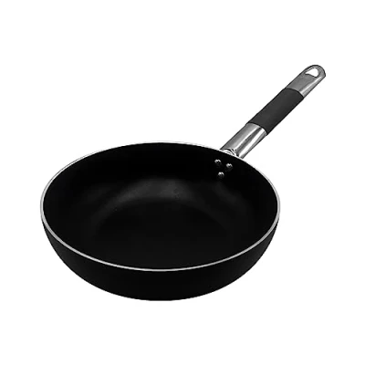 Pentole Agnelli ALSC111BSSC24 Alblack Coarse High Salt Countersunk Aluminum, with "Cool" Stainless Steel Tubular Handle, 24 cm, Black