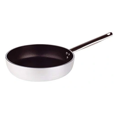 Pentole Agnelli Aluminium Anti Adherent Professional Straight Frying Pan 5 Mm. Thick with Tubular Steel Handle, Diameter 16 Cm, Silver