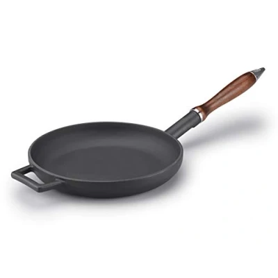 Pentole Agnelli Cast Iron Frying Pan with Wooden Handle, Diameter 28 Cm., Colour Matt Black