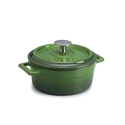 Pentole Agnelli COGHSRP10414G Cookware Slowcook Cast Iron Line Casserole, 14 cm, 0.8 l, Green