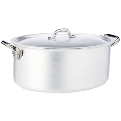 Pentole Agnelli Professional Aluminium 3 Mm. Oval Saucepot with Lid and 2 Handles, Diameter 32 Cm, Stainless Steel, Silver, x 22 13 cm