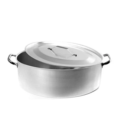 Pentole Agnelli Professional Aluminium 3 Mm. Oval Saucepot with Lid and 2 Handles, Diameter 36 Cm, Stainless Steel, Silver, x 25 15 cm