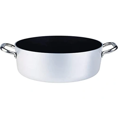 Pentole Agnelli Professional Aluminium Anti Adherent 3 Mm. Deep Platinum Saucepot With 2 Handles, 5.92 Litre, Colour Silver