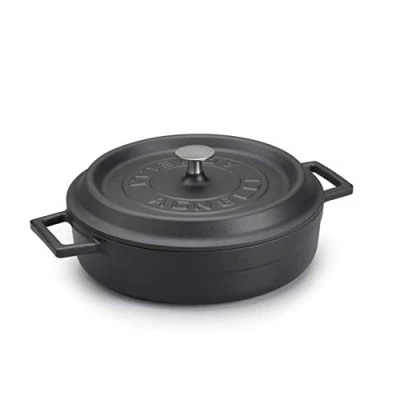 Pentole Agnelli Round Casserole Pot with Two Cast Iron Handles, Diameter 24 Cm, Matt Black, Cm