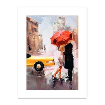 People Kissing Umbrella City Art Print Canvas Premium Wall Decor Poster