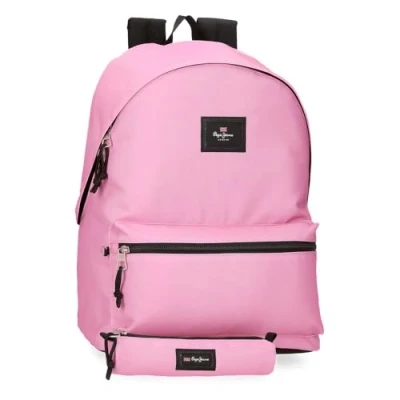 Pepe Jeans Aris Colorful Laptop Backpack 15.6" Double Compartment Pink 31x44x17.5cm Polyester by Joumma Bags