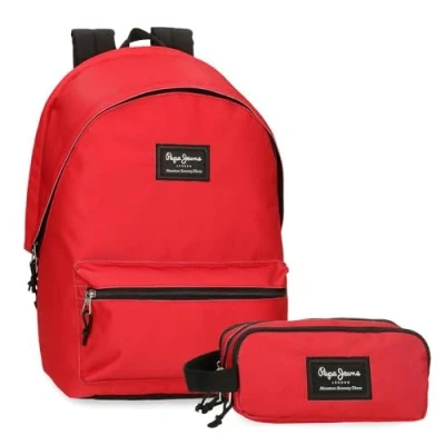 Pepe Jeans Aris Evergreen Backpack + Portable School Pencil Case 15.6 Inches Red 31x44x15cm Polyester 23.87L, red, One Size,