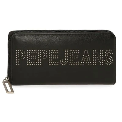 Pepe Jeans Bera Wallet Black 19.5x10x2cm Faux Leather by Joumma Bags