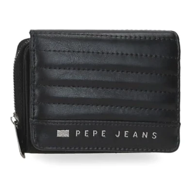 Pepe Jeans Biker Wallet with Purse Black 10x8x3cm Polyester Faux Leather Details by Joumma Bags, Black/White, One Size, Coin