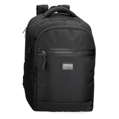 Pepe Jeans Blackmore Laptop Backpack 15.6 Inches Black 31x44x15cm Polyester with Faux Leather Details 20.46L by Joumma Bags, Black/White, One Size,