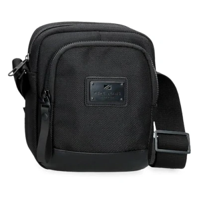 Pepe Jeans Blackmore Shoulder Bag Small Black 15x19.5x6 cm Polyester with Faux Leather Details 1,76L by Joumma Bags, Black/White, One Size, Crossbody