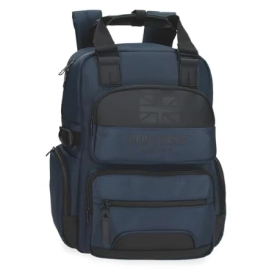 Pepe Jeans Bromley Laptop Backpack 15.6 Inch Blue 28x40x16cm Polyester 17.92L by Joumma Bags, blue, One Size,