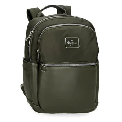 Pepe Jeans Christine Backpack for Laptop up to 12 Inches Green 25x36x10cm Polyester with Faux Leather Details 9L by Joumma Bags, Green, One Size,