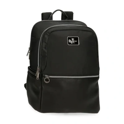 Pepe Jeans Christine Laptop Backpack 15.6 Inch Black 29x40x11cm Polyester with Faux Leather Details 15.6L by Joumma Bags, Black/White, One Size,