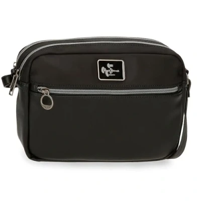 Pepe Jeans Christine Shoulder Bag Black 24x16x9cm Polyester with Faux Leather Details by Joumma Bags, Black/White, One Size, Crossbody
