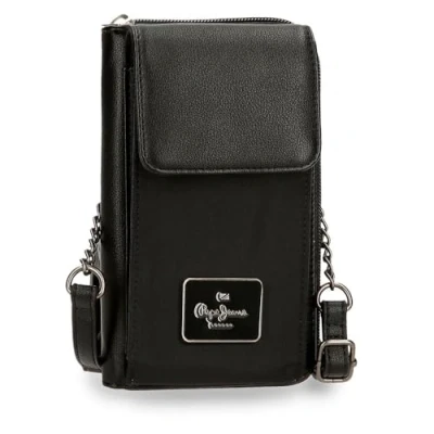 Pepe Jeans Christine Small Shoulder Bag Black 11x20x4cm Polyester with Faux Leather Details by Joumma Bags, Black/White, One Size, Crossbody
