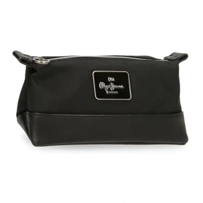 Pepe Jeans Christine Toiletry Bag Black 20.5x11.5x7.5cm Polyester with Faux Leather Details by Joumma Bags, Black/White, One Size,