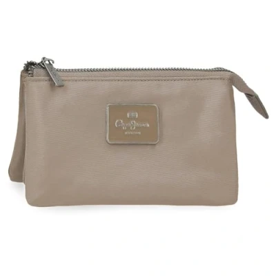 Pepe Jeans Christine Toiletry Bag Three Compartments Beige 17.5x9.5x2cm Polyester with Faux Leather Details by Joumma Bags, Beige, One Size, Compartment