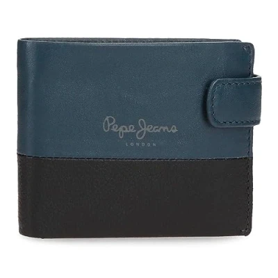 Pepe Jeans Dual Horizontal Wallet with Click Closure Blue 11 x 8.5 1 cm Leather, Blue, One Size,