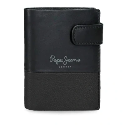 Pepe Jeans Dual Vertical Wallet with Click Closure Black 8.5x10.5x1cm Leather by Joumma Bags, Black/White, One Size,
