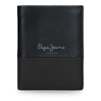 Pepe Jeans Dual Vertical Wallet with Purse Black 8.5x10.5x1cm Leather by Joumma Bags, Black/White, One Size, Coin