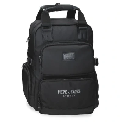 Pepe Jeans Durham Backpack Double Compartment Adaptable 15" Inch Black 28x40x16cm Polyester 17.92L by Joumma Bags