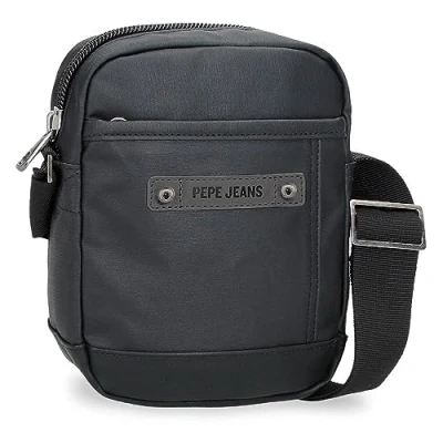 Pepe Jeans Hatfield Small Shoulder Bag Black 15 x 19.5 6 cm Polyester, Black/White, One Size, Crossbody