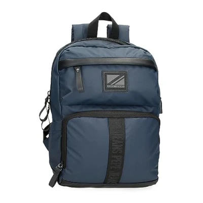 Pepe Jeans Hoxton Black and Blue Polyester PU Laptop Backpack, blue, standard size, Rucksack